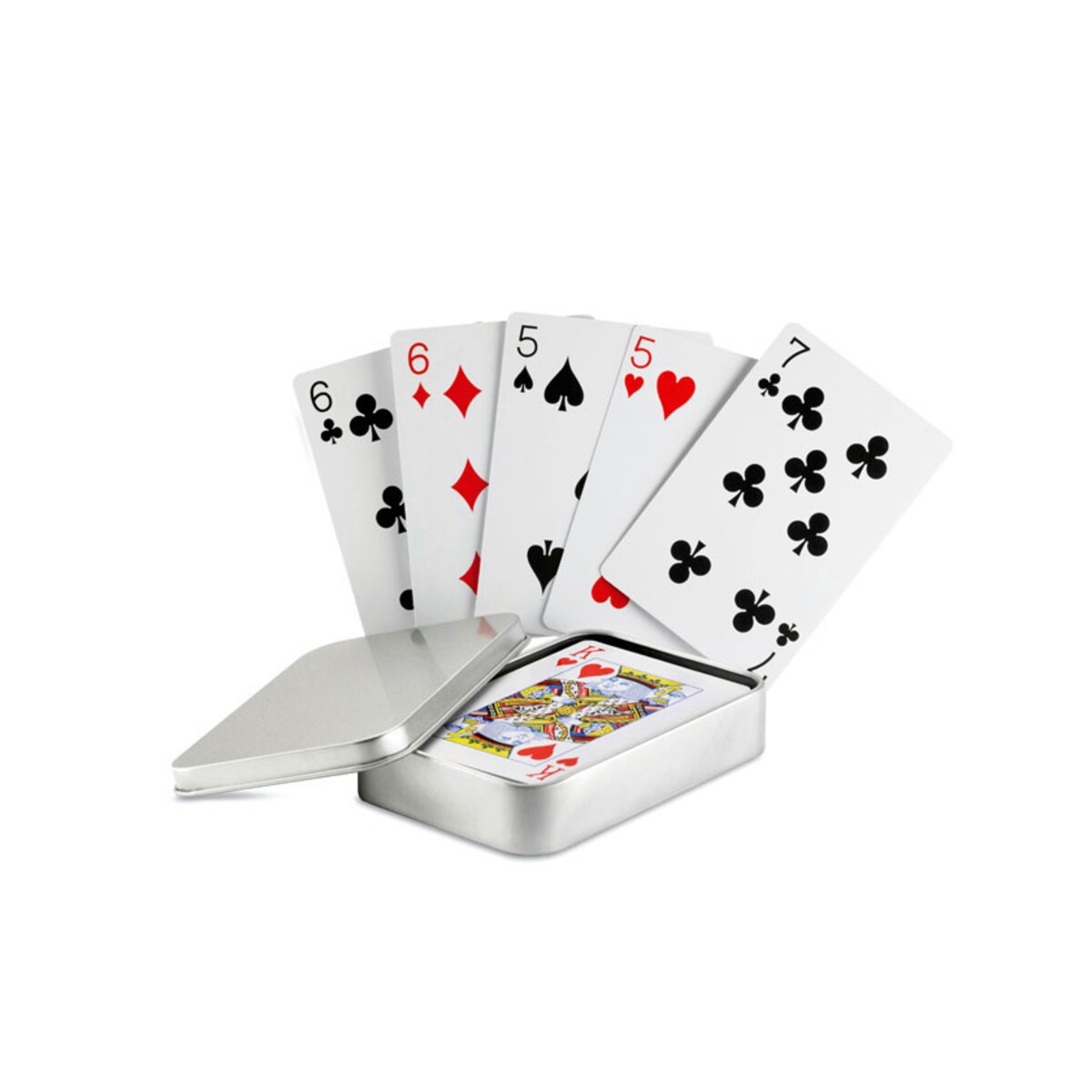 Elegancka talia kart w praktycznym metalowym opakowaniu. Karty jakie są każdy widzi jednak poza korzyściami wynikającymi z posiadania tej eleganckiej talii precyzyjnie drukowanych i idealnie przyciętych gier kupując nasz produkt zyskujesz dodatkowo metalowe opakowanie, w którym z łatwością przemycisz gryps, lub cokolwiek innego.